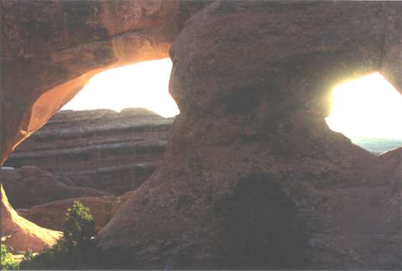 . Well the day has arrived. Today it’s strip the bed. Wash the sheets and comforter. Reapply them for a fresh return home environment. Car’s 98% packed. A quick power wash should alert me of any potential leak from the new windshield installed 48 hours ago. Close timing, the instruction was to wait 48 hours to let the adhesive fully set up. Checking off each item on the "leaving" list there are only two items remaining before heading to Utah. Through Vince a salesman I’ve been casually talking with at HiFi Buys for over eight months, submitted a cover letter and resume for a sales position at a new store opening less than 2 miles from the house. It appears to be the best location of any of their Atlanta stores. Vince advised it would be opening while I’m away. Having spotted the store under preparation 30 hours ago, my rush to complete these papers before leaving had some merit. Why HiFi Buys? Stereo's the hobby. Why not see if there's some fun while working. There’s still a medical appointment at 2PM, then Atlanta becomes history. Pre-trip jitters as a companion for several days are not sorted out yet. Has everything been thought of and addressed? Is the house safe? What challenges will the river have for us? Will the drive west be taxing? All of these are conditions cured by a relaxed mind. It’s easy to say, harder to accomplish. Morning was non-stop. Early afternoon was scheduled to perfection. If I can just get out of Atlanta before rush hour, the weeks before our river put-on will slide into place. Pre-river jitters should quell the first day on water. The unknown factor is, what river changes the Park Service test of continuous 8,000 cubic feet per second will bring. Concerns for increased river volume may be true for rivers in general but the Colorado has a two edged sword. It may be more difficult when high but it’s also reported to be dicey when low. Low it gets technical as well as pushy. The test volume may be high for eastern topography but it's low for western terrain. It's very low for the Colorado. Left Atlanta at 3:00PM from route 400 and I-285. Stopped long enough to top off gas and roared out of town up I-75 toward Chattanooga, TN. The plan, see how far the night will go without strain. First night’s stop option might be just the other side of Chattanooga beside a lake. It’s a short hall from Atlanta but who knows what traffic will bring. Thursday 6/22/00 5:30AM With a Porsche wake up alarm this morning from a fellow rest area traveler parked next space over, it’s wash up, shave and off from Benton, IL. Got further than expected last night. After a gas up in St Louis, MO and a brief detour (missed I-70 interchange having failed to note the interstate change on the AAA map) stopped 40 mile out of town for a nap. The unwanted wake-up call had been too early. 5:30AM eastern, 4:30AM central was pitch black out but allowed passage through St Louis minus traffic. By 8:00AM eastern was off again. Pre-trip calculations had highlighted some timing. If, without strain, the area of Moab, UT could be reached Saturday morning instead of mid afternoon, a campsite might be secured at Arches National Park. First come, first served is a rule at many national parks. The goal now was to reach Denver, CO plus some miles to be within morning’s reach of Moab. Pounded by hard headwinds all afternoon, the heavily loaded Honda struggled under the resistance of a canoe and Tule car top carrier. Pushing, it labored at 80 and often 75mph was all it could do. The psyche of a few western towns, passed through on this trip, seems to shout with the excitement of being physical or out there. Having stopped for two hour in Denver on the way out and having succeeded with the timing by not arriving too late, a last minute opportunity workout and shower at Bally’s gym left the impression they were much better equipped for any kind of workout than their Atlanta counterparts. It felt like kayaker’s, climber’s, canoeist’s, rafter’s, mountain biker’s, hiker’s preparation and augmentation heaven. This western ambiance if not an active person’s environment is perhaps alternatively keeping the faith with crafts, art or local culture. Perhaps it’s merely a sense of focused involvement in the basics. With fewer people than back east, it’s easier to sense this participation. Friday 6/23/00 6:15AM rest area I-70 Blair Ranch rest area nestled between the Colorado River and I-70 140 miles west of Denver is a quiet small landscaped rest area that feels like welcome. It must be 50 – 55 degrees. There’s a boat access as in canoe / kayak and a paved bike path leading up and down the river. Blair Family Ranch is across the river over a ½ to 1 million dollar common road bridge. The Colorado is upper Delaware River wide already. Even with the sound of trucks working their way up the mountain, I-70’s Glenwood Canyon should be celebrated. The route west out of Denver was severe, forcing the Honda down into third gear on occasion in order to maintain a speed above 50mph. I-70 goes vertical as it twists and wriggles into the Rockies. It’s a struggle recognized by anyone un-jaded by the driver’s seat of a 3 ton gas guzzling, emissions producing, luxuriously outfitted, monster engine SUV which cruise these "hills" as if up were down. Glenwood Canyon, they say, is the most celebrated 12.5-mile section of interstate in the nation. It is both a marvel of engineering as it mimics the Colorado’s flow and an example of how we can co-exist with nature. In a tightly cut gorge the Colorado, a single-track railroad and a 4 lane interstate co-mingle. Except for the noise of traffic, even the highway is little to abhor. The rest area could be any mini National Park Service offering. Being ahead of my most optimistic schedule offers an early morning respite to see four small rest areas, a surprise for anyone previously unaware. If we treated the rest of our nation this well there would be n
