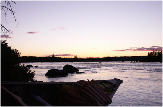 After two weeks paddling, having arrived at the only exit opportunity other than put-in or take-out, we assessed continuing. We had lost just enough time padding open water instead of expected river current; we now had just enough potential time to reach the take-out on schedule. Considering the attendant open water paddling difficulty, we had made remarkable time. For the last quarter mile we finally found a river. It actually had class three rapids, not just some current. Looking at our topographic maps, it looked like we would be in for much more. This would present a wonderful river paddling opportunity. One problem; what if we faced wind? After reaching the river’s end, how long would it take to negotiate open water in Rupert Bay? How long would it take to paddle up the Rupert River to the Cree village of Waskaganish where our car was parked? With no leeway  time we would be pushed to keep up high mileage for another week. I opted to end where we were. Having pushed my body to its limit for two weeks, the potential for fun versus risk of pressing mileage with loaded canoes in unknown rapids on a wide river with possibly high wind wasn’t worth the gamble.